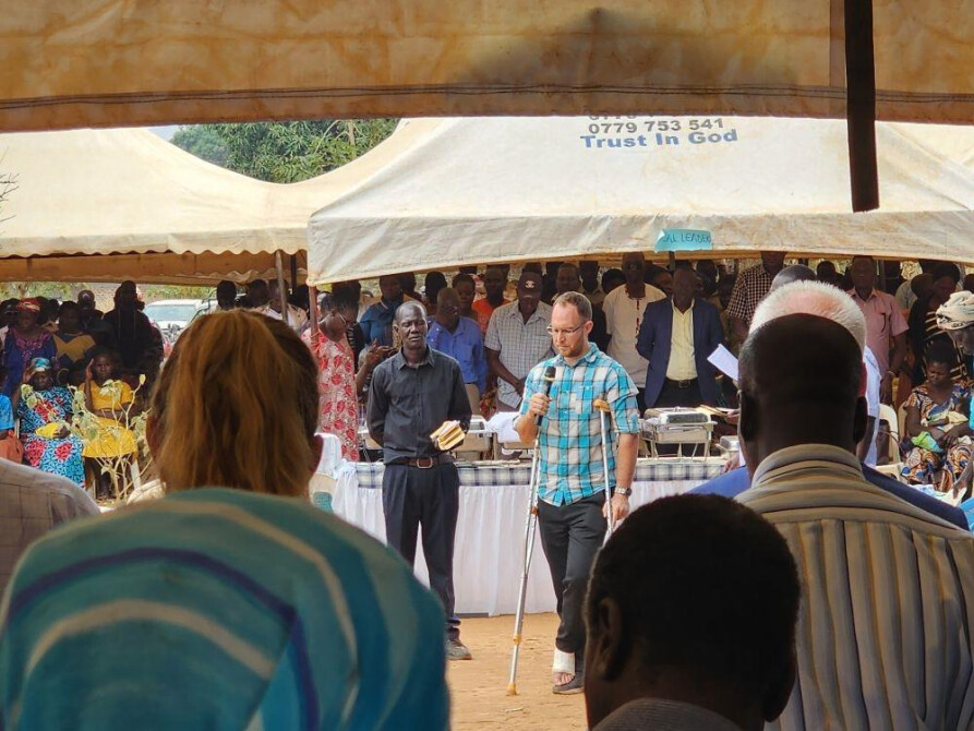 Unfortunately, the day ended poorly for me as I broke my foot during the sermon that Friday (I had never known I could do that:)). During the sermon, I walked outside to ensure the catering would be done on time, but when I stepped two feet down off of the veranda, my foot landed in a hidden hole and cracked my navicular bone:(. Unfortunately, my right leg was badly mauled by a dog a week later, making it very difficult to walk with crutches. Unfortunately, due to the water scarcity in the dry season, the city water has been cut intermittently, causing Noelle to need to fetch water in cans from the church. Last-unfortunately, our daughter Emma fell backward into a row of large rocks while carrying her sister Charlotte on her back and badly tore a muscle in her upper arm (fortunately, Charlotte was not hurt). In light of all that, it goes without saying that Noelle is tired:).